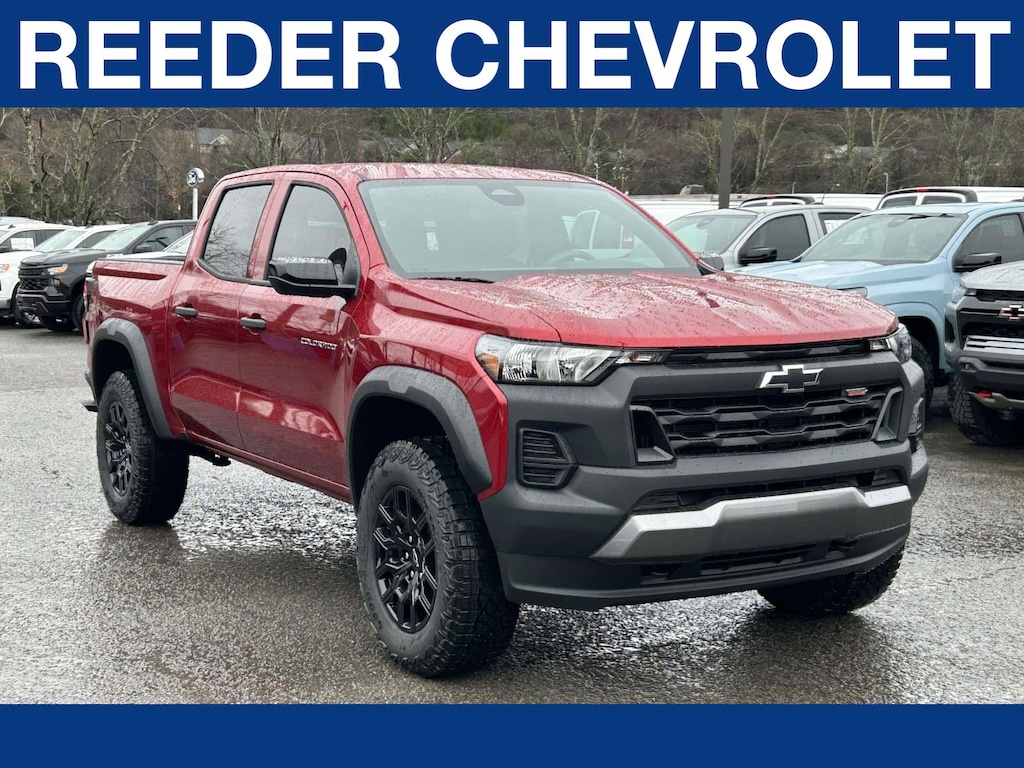 Recent Arrival! Radiant Red 2026 Chevrolet Colorado Trail Boss 4WD 8-Speed Automatic 2.7L I4 Turbocharged DOHC 16V LEV3-ULEV50 310hp 4WD.Reeder Chevrolet is pleased to offer you this great-looking 2026 Chevrolet Colorado with the following options and features 4WD, 3.42 Rear Axle Ratio, 4-Way Manual Passenger Seat Adjuster, 4-Wheel Disc Brakes, 6 Speakers, 6-Speaker Audio System Feature, 6-Way Manual Driver Seat Adjuster, ABS brakes, Air Conditioning, Alloy wheels, AM/FM radio: SiriusXM with 360L, Apple CarPlay/Android Auto, Auto High-beam Headlights, Automatic Emergency Braking, Automatic temperature control, Black Spray-on Bedliner with Chevrolet Logo, Brake assist, Chevy Safety Assist, Cloth Seat Trim, Compass, Delay-off headlights, Driver door bin, Driver vanity mirror, Dual front impact airbags, Dual front side impact airbags, Electronic Stability Control, Emergency communication system: OnStar, Following Distance Indicator, Forward Collision Alert, Front anti-roll bar, Front Bucket Seats, Front Center Armrest, Front dual zone A/C, Front Pedestrian and Bicyclist Braking, Front wheel independent suspension, Heated door mirrors, Illuminated entry, IntelliBeam Automatic High Beam on/Off, Lane Keep Assist with Lane Departure Warning, Low tire pressure warning, Navigation System, Occupant sensing airbag, Outside temperature display, Overhead airbag, Overhead console, Panic alarm, Passenger door bin, Passenger vanity mirror, Power door mirrors, Power steering, Power windows, Radio data system, Radio: 11.3" Diagonal Advanced Color LCD Display, Rear reading lights, Rear step bumper, Rear window defroster, Remote keyless entry, Security system, SiriusXM with 360L Trial Subscription, Speed control, Speed-sensing steering, Split folding rear seat, Steering Wheel Mounted Audio Controls, Steering wheel mounted audio controls, Tachometer, Tilt steering wheel, Traction control, Trip computer, Variably intermittent wipers, Wheels: 18" x 8.5" Black High Gloss Aluminum, and Wireless Phone Projection.Please call to check on the availability of this vehicle. We will buy your vehicle, even if you do not buy ours.
