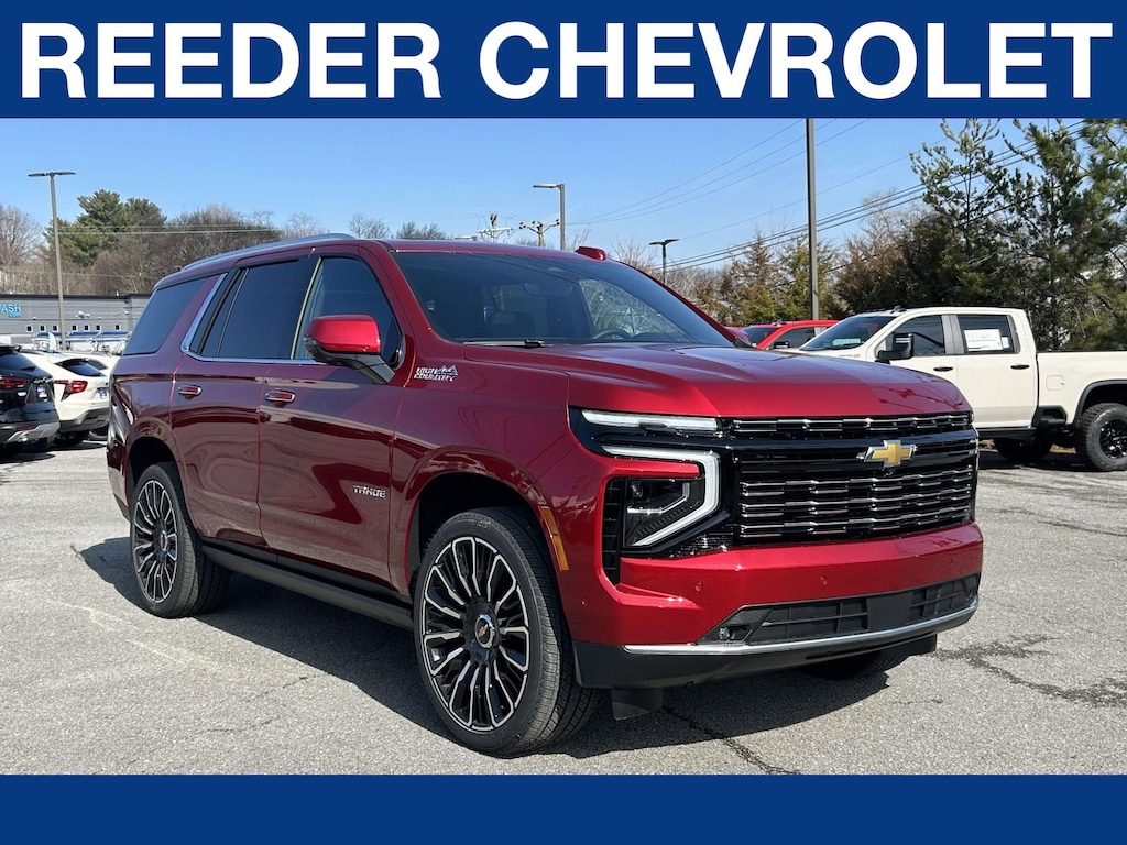 Recent Arrival! Radiant Red 2026 Chevrolet Tahoe High Country 4WD 10-Speed Automatic with Overdrive EcoTec3 6.2L V8 4WD, Jet Black Leather.Reeder Chevrolet is pleased to offer you this fantastic-looking 2026 Chevrolet Tahoe with the following options and features High Country Deluxe (Air Ride Adaptive Suspension, Dual-Pane Power Panoramic Sunroof, and Power-Retractable Assist Steps), Premium Liner Protection Package (3rd Row All-Weather Floor Liners, All-Weather Cargo Mat, and First and Second Rows Premium Floor Liners), 4WD, Jet Black Leather, 10 Speakers, 15" Diagonal Multi-Color Head-Up Display, 1st and 2nd Row Color-Keyed Carpeted Floor Mats, 3-Spoke Wrapped Steering Wheel, 3.23 Rear Axle Ratio, 3rd Row 60/40 Power-Folding Split-Bench Seat, 3rd row seats: split-bench, 4-Way Power Driver Lumbar Seat Adjuster, 4-Way Power Front Passenger Lumbar Seat Adjuster, 4-Wheel Disc Brakes, 8-Way Power Driver Seat Adjuster, 8-Way Power Front Passenger Seat Adjuster, ABS brakes, Adaptive suspension, Air Conditioning, Alloy wheels, AM/FM radio: SiriusXM with 360L, Apple CarPlay/Android Auto, Auto High-beam Headlights, Auto-dimming door mirrors, Auto-dimming Rear-View mirror, Auto-leveling suspension, Automatic temperature control, Bose 10-Speaker Centerpoint Surround Audio System Feature, Brake assist, Bright Front and Rear Door Sill Plates, Bumpers: body-color, Chrome Door Handles with Body-Color Strip, Color-Keyed Carpeting Floor Covering, Compass, Delay-off headlights, Driver and Front Passenger Heated and Ventilated Seats, Driver door bin, Driver vanity mirror, Dual Exhaust System, Dual front impact airbags, Dual front side impact airbags, Electronic Stability Control, Emergency communication system: OnStar and Chevrolet connected services capable, Exterior Parking Camera Rear, Floor Console, Four wheel independent suspension, Front anti-roll bar, Front Bucket Seats, Front Center Armrest, Front dual zone A/C, Front fog lights, Front LED Fog Lamps, Front reading lights, Frontal Driver and Outboard Passenger Airbags, Fully automatic headlights, Garage door transmitter, Heads-Up Display, Heated 2nd Row Outboard Seats, Heated door mirrors, Heated Driver and Front Passenger Seats, Heated front seats, Heated rear seats, Heated Steering Wheel, Heated steering wheel, Illuminated entry, Inside Rearview Auo-Dimming Rear Camera Mirror, Interior Camera, Key Card, LED Headlamps with LED Daytime Running Lamps, LED Tail Lamps, Low tire pressure warning, Magnetic Ride Control Suspension, Memory seat, Memory Settings, Navigation system: Google built-in compatibility (select service plan required, terms and limitations apply), Occupant sensing airbag, Outside Heated Power-Adjustable Mirrors, Outside temperature display, Overhead airbag, Overhead console, Panic alarm, Passenger door bin, Passenger vanity mirror, Perforated Leather Seat Trim, Power door mirrors, Power driver seat, Power Liftgate, Power passenger seat, Power Release 2nd Row Bucket Seats, Power steering, Power Tilt and Telescopic Steering Column, Power windows, Premium audio system: Chevrolet Infotainment 3 Premium, Radio data system, Radio: 17.7" Diagonal Advanced Color LCD Display, Rain sensing wipers, Rear air conditioning, Rear anti-roll bar, Rear Power Liftgate, Rear reading lights, Rear window defroster, Rear window wiper, Remote keyless entry, Remote Start, Security system, Set of 4 Wheel Locks, SiriusXM with 360L Trial Subscription, Speed control, Speed-sensing steering, Split folding rear seat, Spoiler, Steering wheel memory, Steering wheel mounted audio controls, Tachometer, Telescoping steering wheel, Tilt steering wheel, Traction control, Trip computer, Turn signal indicator mirrors, Universal Home Remote, Variably intermittent wipers, Ventilated front seats, Voltmeter, Wheels: 22" x 9" Bright Machined Aluminum, Wheels: 24" x 9.5" Bright Machined, and Wireless Phone Charging.Please call to check on the availability of this vehicle. We will buy your vehicle,