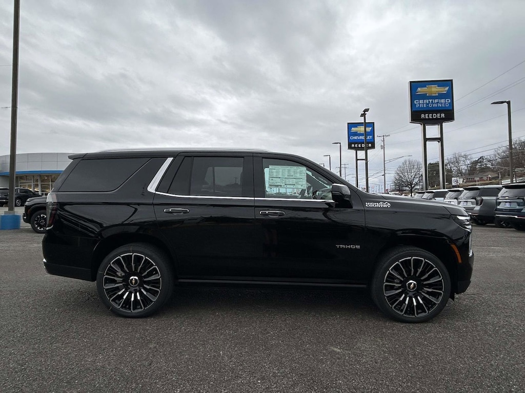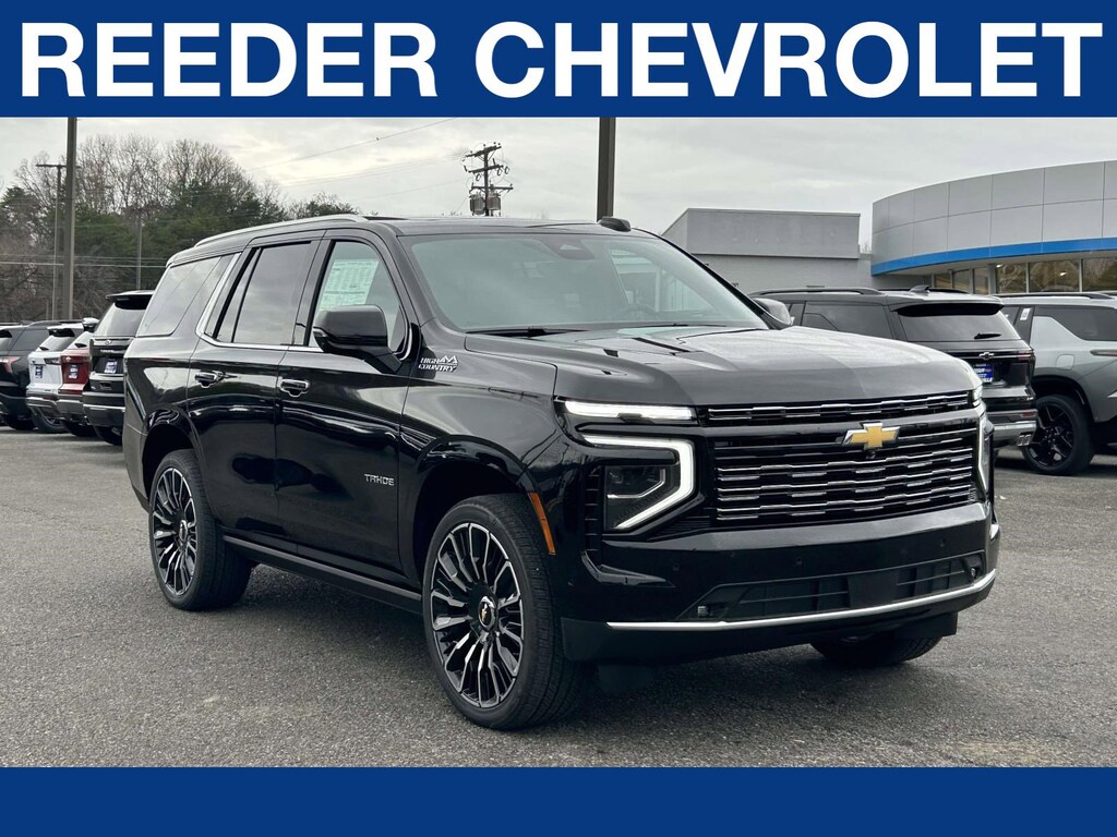 Reeder Chevrolet is pleased to offer you this great 2026 Chevrolet Tahoe with the following options and features High Country Deluxe (Air Ride Adaptive Suspension, Dual-Pane Power Panoramic Sunroof, and Power-Retractable Assist Steps), Premium Liner Protection Package (3rd Row All-Weather Floor Liners, All-Weather Cargo Mat, and First and Second Rows Premium Floor Liners), 4WD, Jet Black Leather, 10 Speakers, 15" Diagonal Multi-Color Head-Up Display, 1st and 2nd Row Color-Keyed Carpeted Floor Mats, 3-Spoke Wrapped Steering Wheel, 3.23 Rear Axle Ratio, 3rd Row 60/40 Power-Folding Split-Bench Seat, 3rd row seats: split-bench, 4-Way Power Driver Lumbar Seat Adjuster, 4-Way Power Front Passenger Lumbar Seat Adjuster, 4-Wheel Disc Brakes, 8-Way Power Driver Seat Adjuster, 8-Way Power Front Passenger Seat Adjuster, ABS brakes, Adaptive suspension, Air Conditioning, Alloy wheels, AM/FM radio: SiriusXM with 360L, Apple CarPlay/Android Auto, Auto High-beam Headlights, Auto-dimming door mirrors, Auto-dimming Rear-View mirror, Auto-leveling suspension, Automatic temperature control, Bose 10-Speaker Centerpoint Surround Audio System Feature, Brake assist, Bright Front and Rear Door Sill Plates, Bumpers: body-color, Chrome Door Handles with Body-Color Strip, Color-Keyed Carpeting Floor Covering, Compass, Delay-off headlights, Driver and Front Passenger Heated and Ventilated Seats, Driver door bin, Driver vanity mirror, Dual Exhaust System, Dual front impact airbags, Dual front side impact airbags, Electronic Stability Control, Emergency communication system: OnStar and Chevrolet connected services capable, Exterior Parking Camera Rear, Floor Console, Four wheel independent suspension, Front anti-roll bar, Front Bucket Seats, Front Center Armrest, Front dual zone A/C, Front fog lights, Front LED Fog Lamps, Front reading lights, Frontal Driver and Outboard Passenger Airbags, Fully automatic headlights, Garage door transmitter, Heads-Up Display, Heated 2nd Row Outboard Seats, Heated door mirrors, Heated Driver and Front Passenger Seats, Heated front seats, Heated rear seats, Heated Steering Wheel, Heated steering wheel, Illuminated entry, Inside Rearview Auo-Dimming Rear Camera Mirror, Interior Camera, Key Card, LED Headlamps with LED Daytime Running Lamps, LED Tail Lamps, Low tire pressure warning, Magnetic Ride Control Suspension, Memory seat, Memory Settings, Navigation system: Google built-in compatibility (select service plan required, terms and limitations apply), Occupant sensing airbag, Outside Heated Power-Adjustable Mirrors, Outside temperature display, Overhead airbag, Overhead console, Panic alarm, Passenger door bin, Passenger vanity mirror, Perforated Leather Seat Trim, Power door mirrors, Power driver seat, Power Liftgate, Power passenger seat, Power Release 2nd Row Bucket Seats, Power steering, Power Tilt and Telescopic Steering Column, Power windows, Premium audio system: Chevrolet Infotainment 3 Premium, Radio data system, Radio: 17.7" Diagonal Advanced Color LCD Display, Rain sensing wipers, Rear air conditioning, Rear anti-roll bar, Rear Power Liftgate, Rear reading lights, Rear window defroster, Rear window wiper, Remote keyless entry, Remote Start, Security system, Set of 4 Wheel Locks, SiriusXM with 360L Trial Subscription, Speed control, Speed-sensing steering, Split folding rear seat, Spoiler, Steering wheel memory, Steering wheel mounted audio controls, Tachometer, Telescoping steering wheel, Tilt steering wheel, Traction control, Trip computer, Turn signal indicator mirrors, Universal Home Remote, Variably intermittent wipers, Ventilated front seats, Voltmeter, Wheels: 22" x 9" Bright Machined Aluminum, Wheels: 24" x 9.5" Bright Machined, and Wireless Phone Charging.