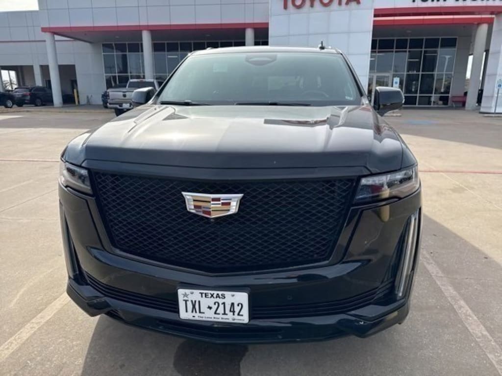 This vehicle comes equipped with: Preferred Equipment Group 1SH (Adaptive Cruise Control, AKG Studio Reference 36-Speaker Audio System, Automatic Seat Belt Tightening, Automatic Stop/Start, Body-Color Door Handles, Door Lock & Latch Shields, Electronic Limited-Slip Differential, Enhanced Automatic Emergency Braking, Enhanced Automatic Parking Assist, Floor Console w/Covered Storage, Front Auxiliary 12-volt Power Outlet, Glass Breakage Sensor, Hitch Guidance w/Hitch View, Integrated Trailer Brake Controller, Platinum Interior Trim, Power Panoramic Tilt-Sliding Sunroof, Rear Camera Mirror, Rear Camera Mirror Washer, Rear Cross Traffic Alert, Rear Seat Entertainment System, Reconfigurable Full-Color Head-Up Display, Reverse Automatic Braking, Running Board Assist Steps, Smart Trailer Integration Indicator, Start/Stop System Disable Button, Theft-Deterrent Alarm System, Trailer Side Blind Zone Alert, Vehicle Inclination Sensor, and Vehicle Interior Movement Sensor), Touring Package (Air Ride Adaptive Suspension, Illuminating Front & Rear Sill Plates, and Soft Closing Front & Rear Doors), 4WD, Jet Black Leather, 16.9 Diagonal OLED Infotainment Screen, 2-Presets Memory For Driver Seat Adjuster, 3.23 Axle Ratio, 3rd row seats: split-bench, 4-Way Power Driver Lumbar Seat Adjuster, 4-Way Power Front Passenger Lumbar Seat Adjuster, 4-Wheel Disc Brakes, 8-Way Power Driver Seat Adjuster, 8-Way Power Front Passenger Seat Adjuster, A/V remote, ABS brakes, Adaptive suspension, Air Conditioning, Alloy wheels, AM/FM radio: SiriusXM with 360L, Apple CarPlay/Android Auto, Audio memory, Auto High-beam Headlights, Auto tilt-away steering wheel, Auto-dimming door mirrors, Auto-dimming Rear-View mirror, Automatic temperature control, Brake assist, Bumpers: body-color, Compass, Delay-off headlights, Door auto-latch, Driver door bin, Driver vanity mirror, Dual front impact airbags, Dual front side impact airbags, Electronic Stability Control, Emergency communication system: OnStar and Cadillac connected services capable, Four wheel independent suspension, Front 6-Piston Brembo Brake Upgrade (LPO), Front anti-roll bar, Front Bucket Seats, Front Center Armrest w/Storage, Front dual zone A/C, Front License Plate Bracket, Front reading lights, Full Semi-Aniline Leather Seats, Fully automatic headlights, Garage door transmitter, Genuine wood console insert, Genuine wood dashboard insert, Genuine wood door panel insert, Gloss Black Escalade Nameplate (LPO), HD Radio, Headphones, Heads-Up Display, Heated & Ventilated Driver & Front Passenger Seats, Heated door mirrors, Heated Driver & Front Passenger Seats, Heated front seats, Heated rear seats, Heated steering wheel, Illuminated entry, Leather steering wheel, Low tire pressure warning, Magnetic Ride Control Suspension, Memory seat, Navigation System, Not Equipped w/Steering Column Lock, Occupant sensing airbag, Outside temperature display, Overhead airbag, Overhead console, Panic alarm, Passenger door bin, Passenger vanity mirror, Power door mirrors, Power driver seat, Power Liftgate, Power Lumbar Massage Driver Seat, Power Lumbar Massage Front Passenger Seat, Power moonroof, Power passenger seat, Power steering, Power windows, Radio data system, Radio: AM/FM/SiriusXM w/Navigation, Rain sensing wipers, Rear air conditioning, Rear anti-roll bar, Rear audio controls, Rear reading lights, Rear window defroster, Rear window wiper, Remote keyless entry, Roof rack: rails only, Security system, SiriusXM w/360L, Speed control, Split folding rear seat, Spoiler, Steering wheel memory, Steering wheel mounted audio controls, Super Cruise, Tachometer, Teen Driver, Telescoping steering wheel, Tilt steering wheel, Traction control, Trip computer, Turn signal indicator mirrors, Variably intermittent wipers, Ventilated front seats, Voltmeter, Wheels: 22 12-Spoke Polished Alloy, and Wir
