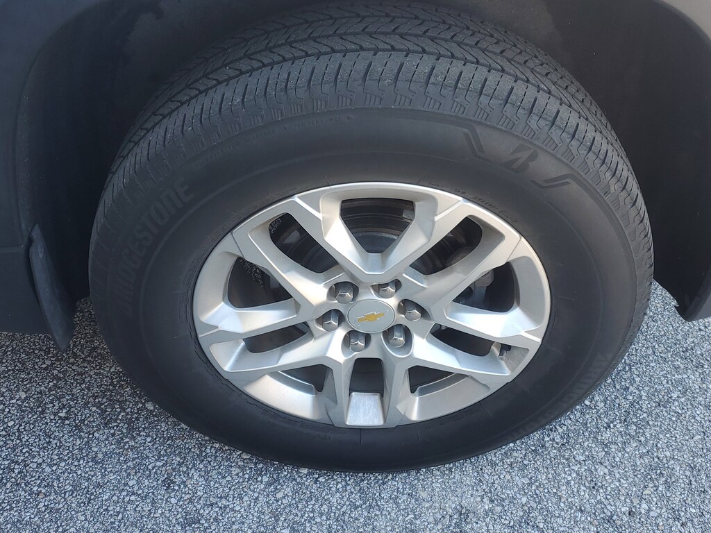 This Vehicle comes equipped with: Preferred Equipment Group 1LS, AWD, 3.49 Axle Ratio, 3rd row seats: split-bench, 4-Wheel Disc Brakes, 6 Speakers, 8-Passenger Seating (2-3-3 Seating Configuration), ABS brakes, Air Conditioning, Alloy wheels, AM/FM radio, Apple CarPlay/Android Auto, Automatic temperature control, Brake assist, Bumpers: body-color, Compass, Delay-off headlights, Driver door bin, Driver vanity mirror, Dual front impact airbags, Dual front side impact airbags, Electronic Stability Control, Emergency communication system: OnStar and Chevrolet connected services capable, Four wheel independent suspension, Front anti-roll bar, Front Bucket Seats, Front Center Armrest, Front dual zone A/C, Front reading lights, Fully automatic headlights, Heated door mirrors, High-Intensity Discharge Headlights, Illuminated entry, Low tire pressure warning, Occupant sensing airbag, Outside temperature display, Overhead airbag, Overhead console, Panic alarm, Passenger door bin, Passenger vanity mirror, Power door mirrors, Power steering, Power windows, Premium Cloth Seat Trim, Radio data system, Radio: Chevrolet Infotainment System AM/FM Stereo, Rear air conditioning, Rear anti-roll bar, Rear reading lights, Rear window defroster, Rear window wiper, Remote keyless entry, Security system, Speed control, Speed-sensing steering, Split folding rear seat, Spoiler, Steering wheel mounted audio controls, Tachometer, Telescoping steering wheel, Tilt steering wheel, Traction control, Trip computer, Variably intermittent wipers, Voltmeter, and Wheels: 18" Bright Silver Painted Aluminum.
