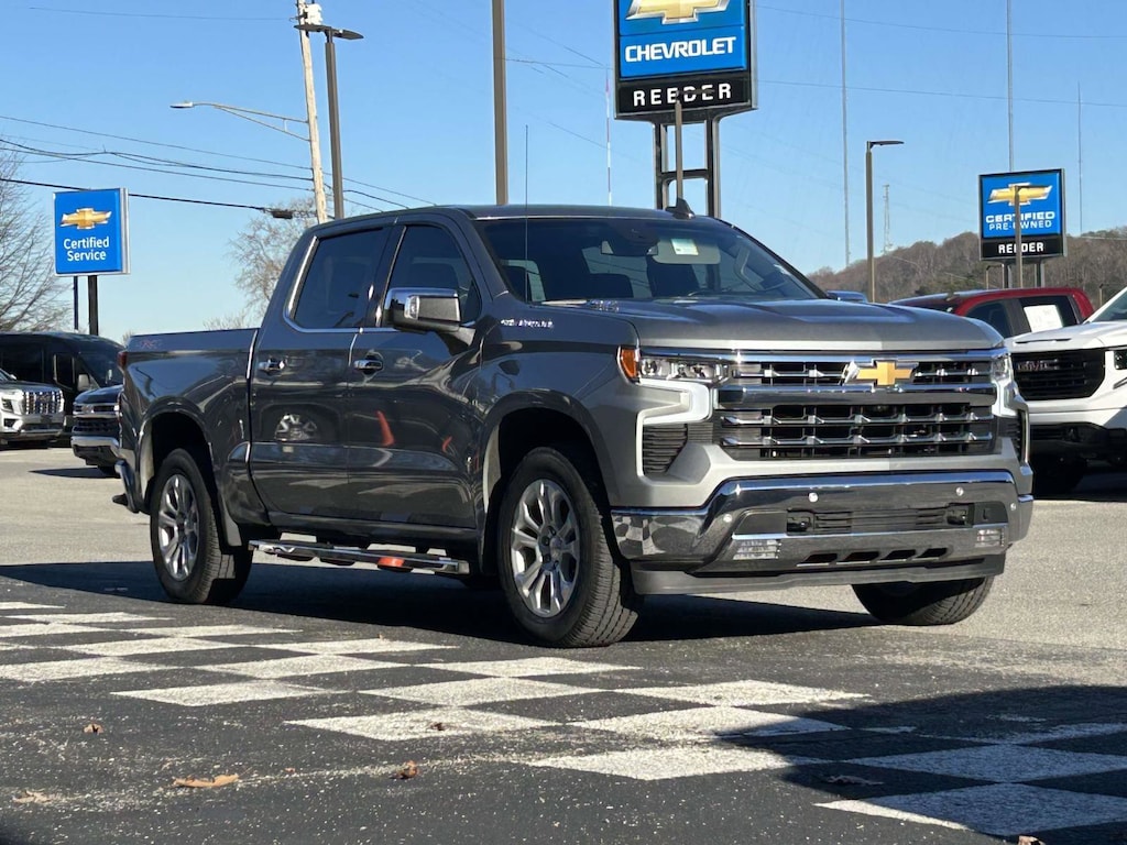 Reeder Chevrolet is pleased to offer you this reliable 2025 Chevrolet Silverado 1500 with the following options and features High Capacity Suspension Package, LTZ Convenience Package (2 USB Data Ports, Floor Mounted Center Console, Power Tilt & Telescoping Steering Column, Premium Bose 7-Speaker Sound System, Ventilated Driver & Front Passenger Seats, and Wireless Charging), LTZ Plus Package, Preferred Equipment Group 1LZ (10-Way Power Driver Seat w/Lumbar, 10-Way Power Passenger Seat Adjuster w/Lumbar, 12.3" Multicolor Reconfigurable Digital Display, 120-Volt Bed Mounted Power Outlet, 120-Volt Interior Power Outlet, Auto-Dimming Inside Rear-View Mirror, Auto-Locking Rear Differential, Bluetooth® For Phone, Chrome Mirror Caps, Color-Keyed Carpeting Floor Covering, Deep-Tinted Glass, Driver Memory, Dual Rear USB Ports (Charge Only), Electric Rear-Window Defogger, Electronic Cruise Control, Front Frame-Mounted Black Recovery Hooks, Front LED Fog Lamps, Front Rain-Sensing Wipers, Front Rubberized Vinyl Floor Mats, Heated Driver & Front Outboard Passenger Seats, Heated Steering Wheel, Hitch Guidance w/Hitch View, In-Vehicle Trailering System App, Integrated Trailer Brake Controller, Keyless Open & Start, LED Cargo Area Lighting, OnStar Services Capable, Outside Heated Power-Adjustable Mirrors, Power Front Passenger Windows w/Express Up/Down, Power Front Windows w/Driver Express Up/Down, Power Rear Windows w/Express Down, Power Tailgate, Rear Rubberized-Vinyl Floor Mats, Rear Wheelhouse Liners, Remote Vehicle Starter System, SiriusXM w/360L Trial Subscription, Standard Tailgate, Steering Wheel Audio Controls, Teen Driver, Theft Deterrent System (Unauthorized Entry), Tire Pressure Monitoring System, Wi-Fi Hot Spot Capable, and Wrapped Steering Wheel), Safety Package (HD Surround Vision, Perimeter Lighting, Rear Cross Traffic Braking, Rear Pedestrian Alert, Safety Alert Seat, Trailer Camera Provisions, Trailer Side Blind Zone Alert, and Ultrasonic Front & Rear Park Assist), Trailering Package (Hitch Guidance), Up-Level Rear Seat w/Storage Package, 10-Speed Automatic, 4WD, Jet Black Leather, 170 Amp Alternator, 220 Amp Alternator, 3.23 Rear Axle Ratio, 4-Wheel Disc Brakes, 7 Speakers, ABS brakes, Air Conditioning, Alloy wheels, AM/FM radio: SiriusXM with 360L, Apple CarPlay/Android Auto, Auto High-beam Headlights, Auto-dimming door mirrors, Auto-dimming Rear-View mirror, Automatic Emergency Braking, Automatic temperature control, Brake assist, Bumpers: chrome, Compass, Delay-off headlights, Driver door bin, Driver vanity mirror, Dual Exhaust w/Polished Outlets, Dual front impact airbags, Dual front side impact airbags, Electronic Stability Control, Electronic Transmission Range Selector Shifter, Emergency communication system: OnStar, Engine Block Heater, Following Distance Indicator, Forward Collision Alert, Front anti-roll bar, Front Bucket Seats, Front Center Armrest, Front dual zone A/C, Front fog lights, Front Pedestrian Braking, Front reading lights, Front wheel independent suspension, Fully automatic headlights, Heated door mirrors, Heated front seats, Heated steering wheel, Illuminated entry, IntelliBeam Automatic High Beam On/Off, Lane Keep Assist w/Lane Departure Warning, Low tire pressure warning, Memory seat, Occupant sensing airbag, Outside temperature display, Overhead airbag, Overhead console, Panic alarm, Passenger door bin, Passenger vanity mirror, Perforated Leather-Appointed Front Seat Trim, Power door mirrors, Power driver seat, Power passenger seat, Power steering, Power windows, Premium audio system: Chevrolet Infotainment 3 Premium, Radio data system, Radio: Chevrolet Infotainment 3 Premium System, Rain sensing wipers, Rear reading lights, Rear seat center armrest, Rear step bumper, Rear window defroster, Remote keyless entry, Security system, Speed control, Speed-sensing ste