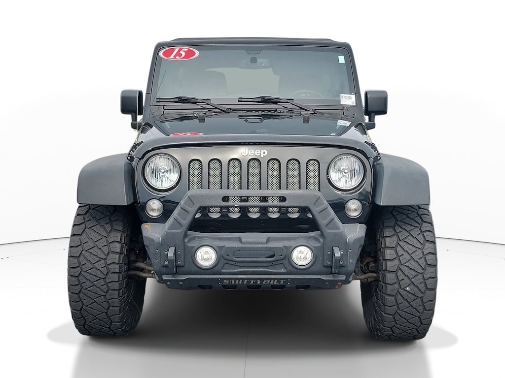 2015 Jeep Wrangler 3.6L V6 24V VVT Black Clearcoat This vehicle also comes equipped with: Connectivity Group (Tire Pressure Monitoring Display and Vehicle Information Center), Quick Order Package 24R, 17 x 7.5 Polished Mineral Gray Wheels, 4-Wheel Disc Brakes, 4.10 Rear Axle Ratio, 8 Speakers, ABS brakes, Add 4.10 Axle Ratio, Air Conditioning, Alloy wheels, Alpine 9-Speaker w/All Weather Subwoofer, AM/FM radio, Audio Jack Input for Mobile Devices, Auto-dimming Rear-View mirror, Brake assist, CD player, Cloth Bucket Seats, Compass, Driver door bin, Driver vanity mirror, Dual front impact airbags, Electronic Stability Control, Front anti-roll bar, Front Bucket Seats, Front Center Armrest w/Storage, Front fog lights, Front reading lights, Fully automatic headlights, Heated door mirrors, Illuminated entry, Integrated roll-over protection, Leather steering wheel, Leather Wrapped Steering Wheel, Low tire pressure warning, Manufacturer's Statement of Origin, MOPAR Slush Mats, Occupant sensing airbag, Outside temperature display, Panic alarm, Passenger door bin, Passenger vanity mirror, Performance Suspension, Power door mirrors, Power steering, Power windows, Radio data system, Radio: Uconnect 130 AM/FM/CD/MP3, Rear anti-roll bar, Remote keyless entry, Security system, Speed control, Split folding rear seat, Steering wheel mounted audio controls, Sunrider Soft Top, Tachometer, Tilt steering wheel, Traction control, Trip computer, and Variably intermittent wipers. 4WD New Price! 5-Speed Automatic Recent Arrival! Priced below KBB Fair Purchase Price! Odometer is 40656 miles below market average!