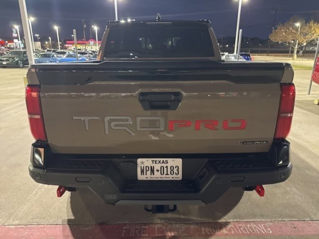 Mud Bath w/Black Roof 2025 Toyota Tacoma Hybrid TRD Pro 4WD 8-Speed Automatic 2.4L I4 PDI Hybrid Turbocharged DOHC 16V 2.4L I4 PDI Hybrid Turbocharged DOHC 16V, ABS brakes, Active Cruise Control, Alloy wheels, Electronic Stability Control, Front dual zone A/C, Heated door mirrors, Heated front seats, Illuminated entry, Low tire pressure warning, Navigation System, Power moonroof, Remote keyless entry, Traction control.