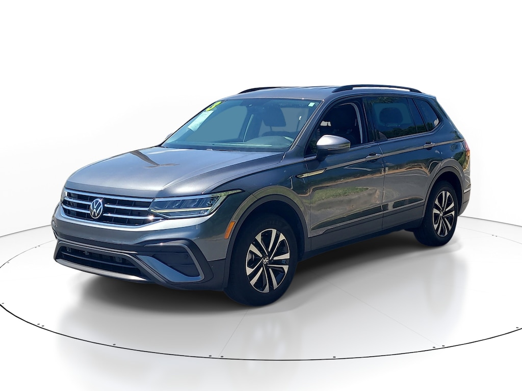 This Vehicle is nicely equipped with the following features: 3-Row Rubber Monster Mats w/Logo Kit (Set of 5), 3.33 Axle Ratio, 3rd row seats: bench, 4-Wheel Disc Brakes, 4-Wheel Independent Suspension, 6 Speakers, ABS brakes, Air Conditioning, Alloy wheels, AM/FM radio, Brake assist, Bumpers: body-color, Cloth Seating Surfaces, Compass, Delay-off headlights, Driver door bin, Driver vanity mirror, Dual front impact airbags, Dual front side impact airbags, Electronic Stability Control, Emergency communication system: VW Car-Net Safe & Secure 5-year, Exterior Parking Camera Rear, First Aid Kit, Forward collision: FCW w/Autonomous Emergency Braking mitigation, Four wheel independent suspension, Front anti-roll bar, Front Bucket Seats, Front Center Armrest, Front reading lights, Fully automatic headlights, Heated door mirrors, Heated Front Bucket Seats, Heated front seats, Heavy Duty Trunk Liner w/VW CarGo Blocks, Illuminated entry, Leather Shift Knob, Low tire pressure warning, Occupant sensing airbag, Outside temperature display, Overhead airbag, Overhead console, Panic alarm, Passenger door bin, Passenger vanity mirror, Power door mirrors, Power steering, Power windows, Radio data system, Radio: Composition Color AM/FM, Rear anti-roll bar, Rear reading lights, Rear seat center armrest, Rear window defroster, Rear window wiper, Remote keyless entry, Roadside Assistance Kit, Speed control, Speed-sensing steering, Split folding rear seat, Spoiler, Steering wheel mounted audio controls, Tachometer, Telescoping steering wheel, Tilt steering wheel, Traction control, Trip computer, Turn signal indicator mirrors, Variably intermittent wipers, VW Car-Net Safe & Secure 5-Year Plan, and Wheels: 17" 2-Tone Machined Twin 5-Spoke Alloy. 24/31 City/Highway MPG